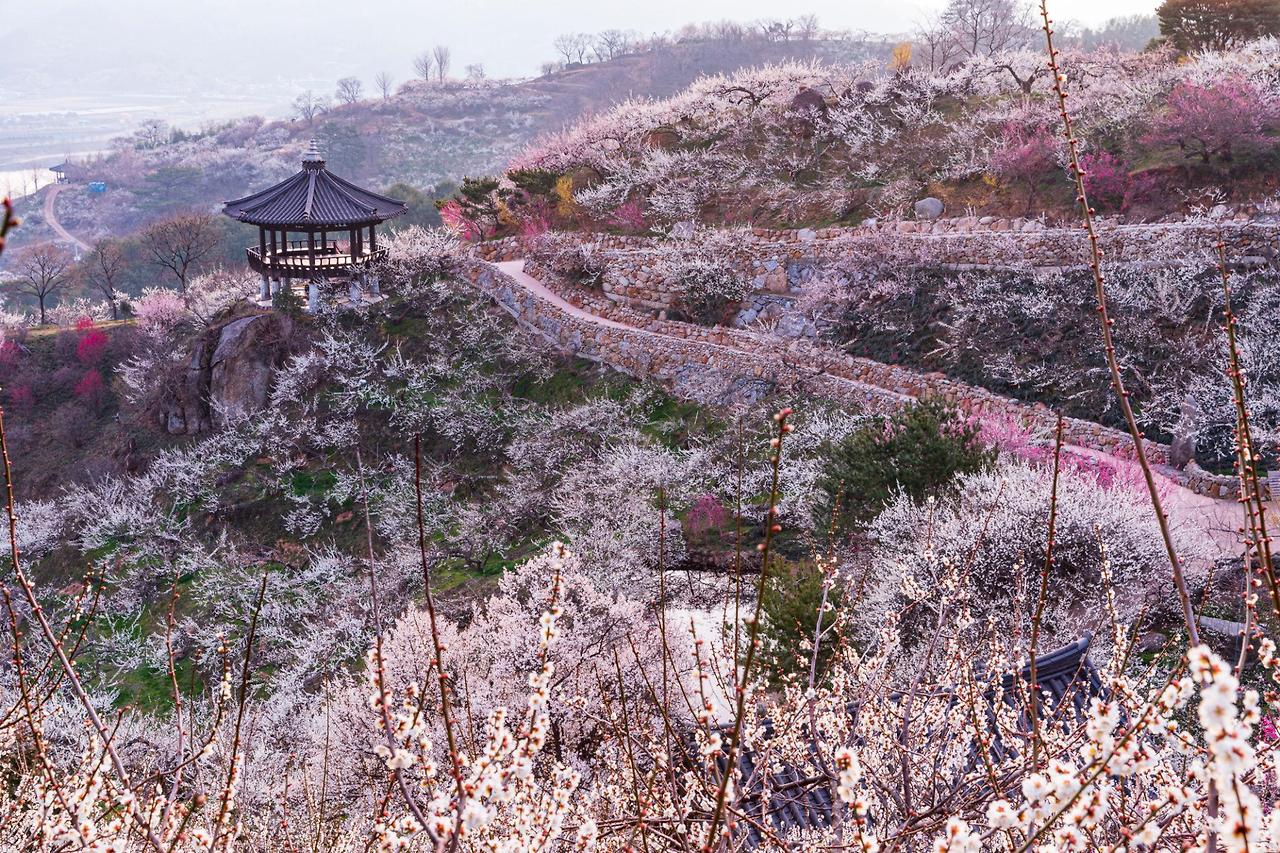 전라남도 광양에 위치한 광양 매화마을은 우리나라에서 가장 유명한 매화 명소 중 하나로, 매년 봄이 되면 수많은 매화꽃이 산과 마을을 뒤덮으며 장관을 이룹니다.